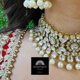 Regal kundan effect choker set. Item comes with matching chumki earrings and tikka.