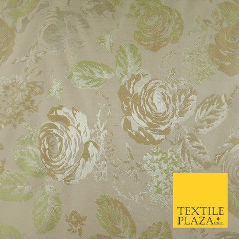 Pale Nude Peach Green Vintage Floral Carnations Jacquard Dress Fabric 7143