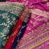 ▪️Unstitched soft faux silk jacquard embroidered suit
