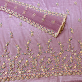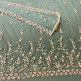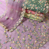 ▪️Unstitched tulle net suit with self threadwork zari floral vine embroidery