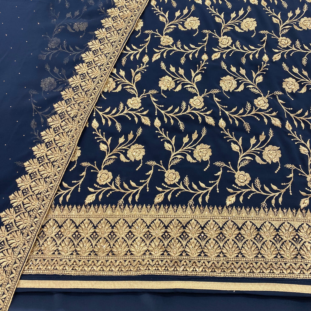 ▪️Unstitched soft georgette suit with jaal embroidery & stonework all over with border