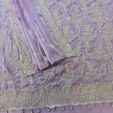 ▪️Embellished with jaal contrast threadwork embroidery with crystal stonework all over & a heavy border finished with tassels