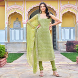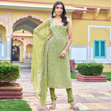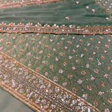 ▪️Comes with a chiffon dupatta with flower motif embroidery & two side border