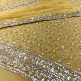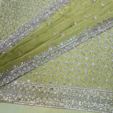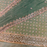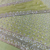 ▪️Unstitched soft faux shimmer silk suit embellished with pearl work, beadwork, sippi work & jaal embroidery