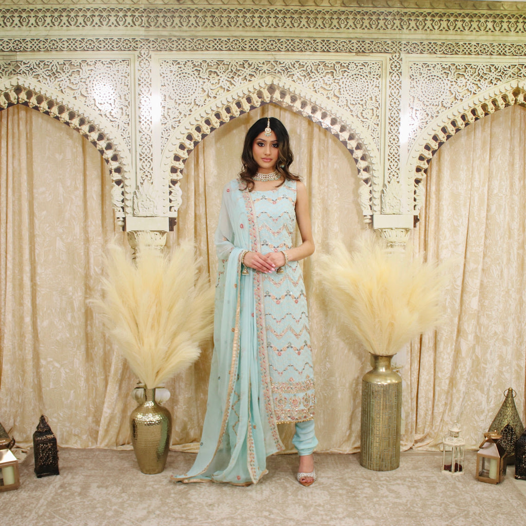 ▪️Features floral motifs with pastel contrast threadwork embroidery with stonework & beadwork trimming on border