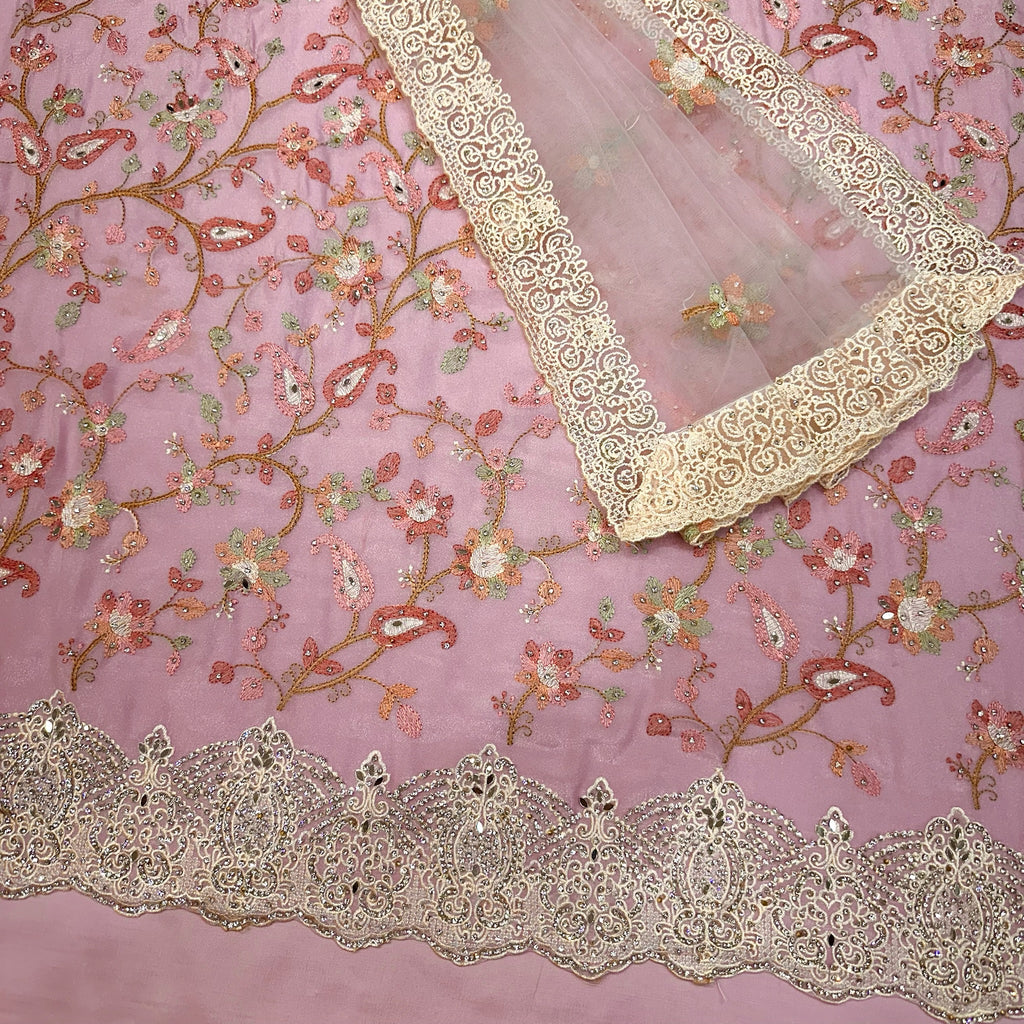 ▪️Tulle net dupatta with four side lace effect embroidered edging