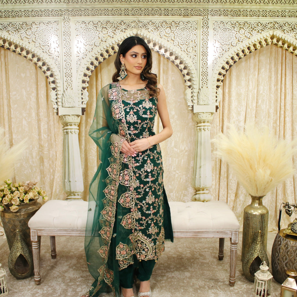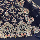 ▪️Unstitched tulle net suit with antique dori & zari floral jaal embroidery