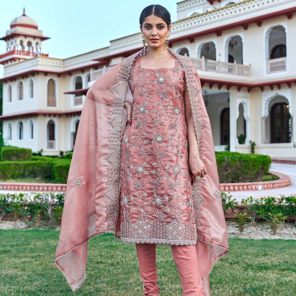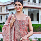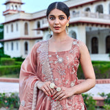 ▪️ Features jaal embroidery with zari work, pearl work , stonework & dori work all over