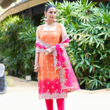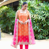 ▪️Unstitched soft faux ombre benarsi silk suit embellished with stonework & pearl work