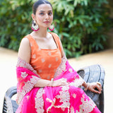 ▪️Tulle net dupatta with floral motif embroidery all over & two side floral scalloped border finished with pearl tassels