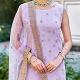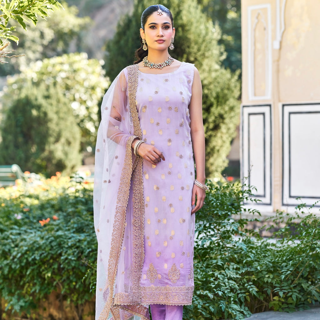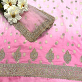 ▪️Unstitched soft faux ombre benarsi silk suit embellished with stonework & pearl work