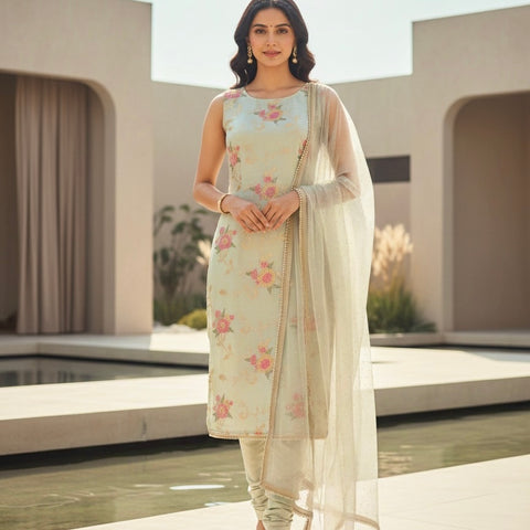 Soft Digital Printed Organza Faux Silk Suit