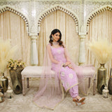 ▪️Tulle net dupatta with subtle stonework & four side pearl beading trim