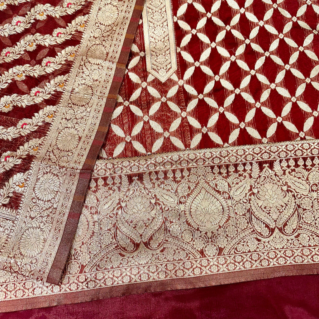 ▪️Faux benarsi lattice silk suit with a neck design & border
