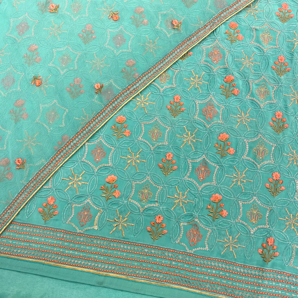 ▪️Comes with a soft chiffon dupatta with floral motifs all over & four sided embroidered border