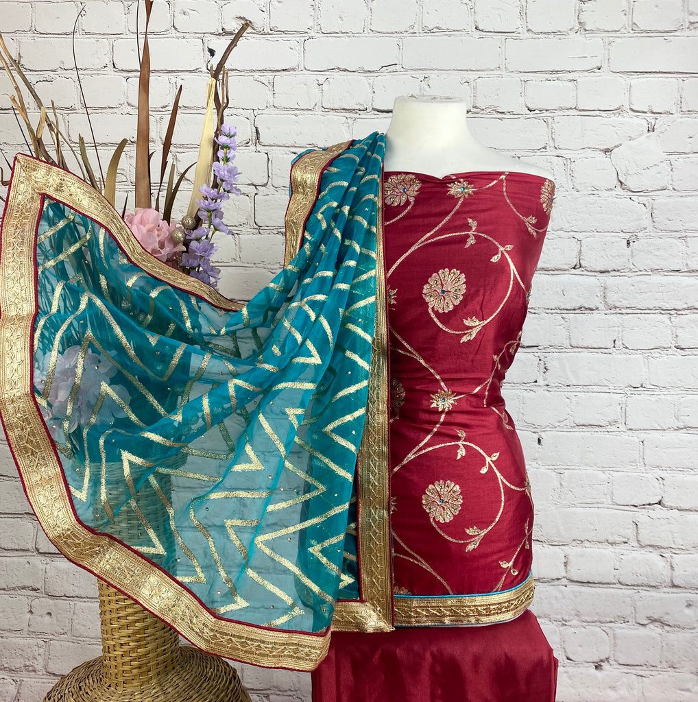 ▪️Unstitched soft faux benarsi silk suit with stonework & border