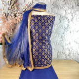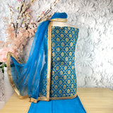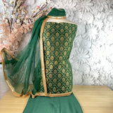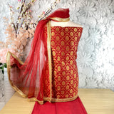 ▪️Comes with a tulle net dupatta with stonework all over & four sided gold border