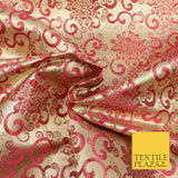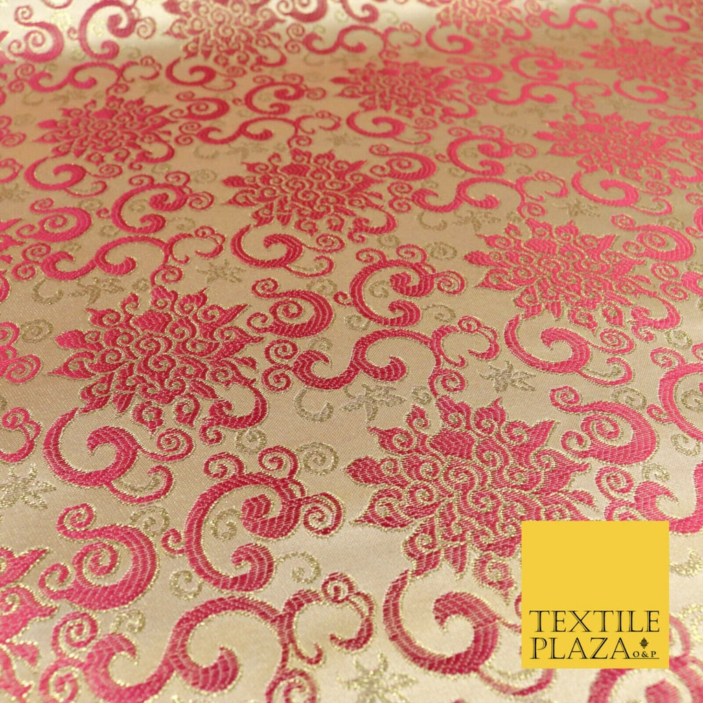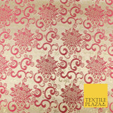 CHERRY PINK Ornamental Swirls Brocade Dress Fabric Metallic Woven Fanc