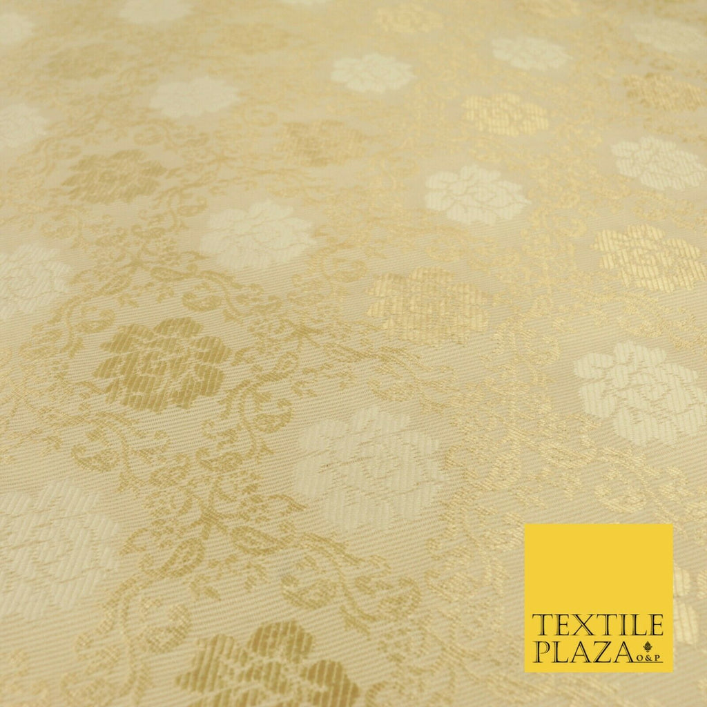 CREAM GOLD Floral Ornate Lattice Banarsi Brocade Fabric Dress Fancy Cr