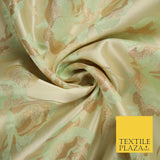Cream Gold Mint Green Blooming Leafy Rose Flowers Brocade Jacquard Fab