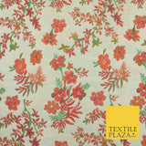 Cream Pink Floral Botanic Embossed Textured Brocade Jacquard Dress Fab