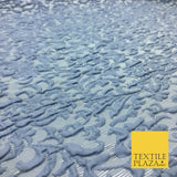 DUSTY BLUE Ornate Floral 3D Bubble Brocade Dress Fabric Metallic Fancy