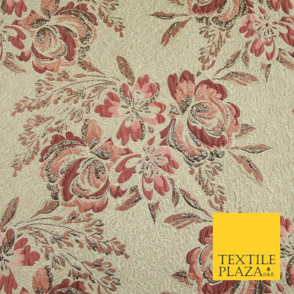 Ornate Mix Floral Swirls Metallic Textured Brocade Fabric