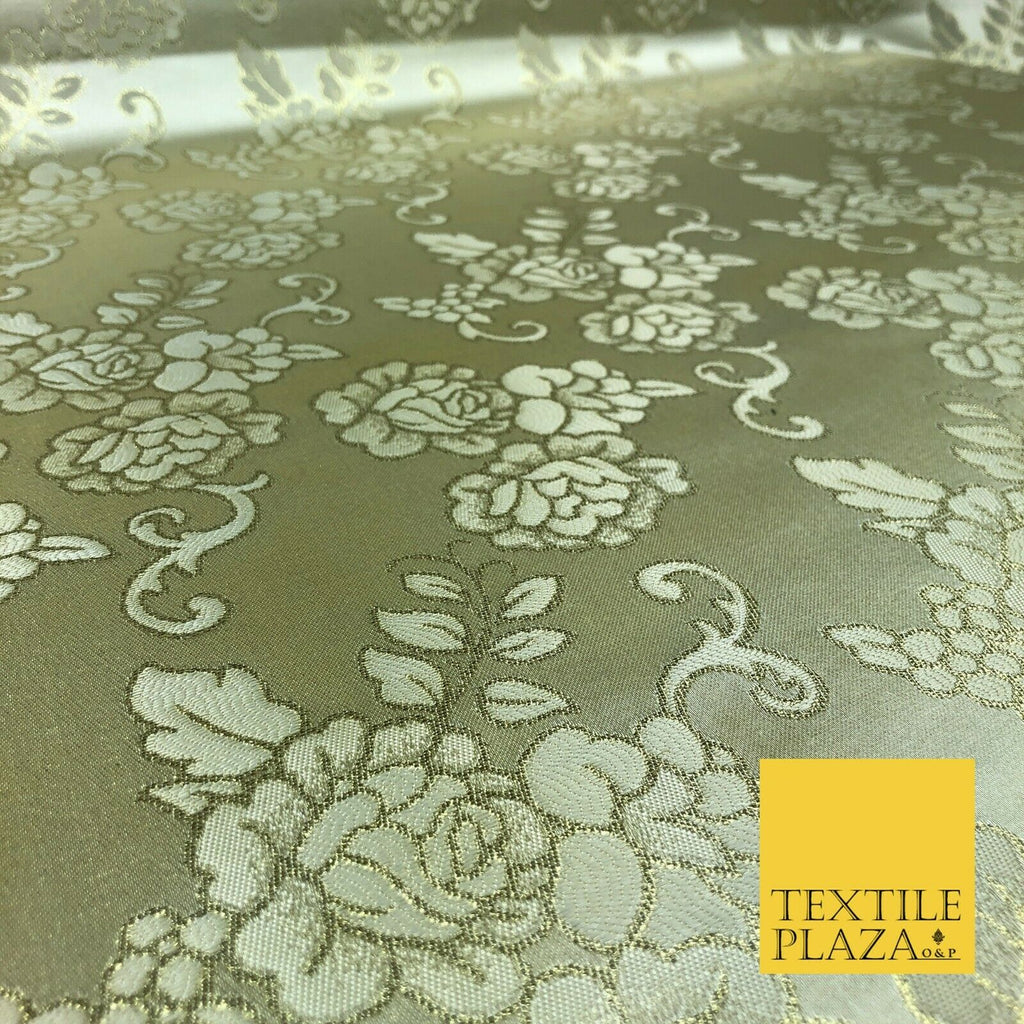 GOLD Ornamental Flower Ornate Rose Brocade Dress Fabric Metallic Woven