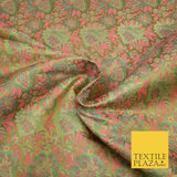 Green Pink Luxury Floral PURE Benarsi Brocade Woven Fine Dress Fabric