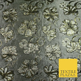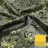 Grey Gold Metallic Gold Floral Pansy Textured Brocade Jacquard Dress F