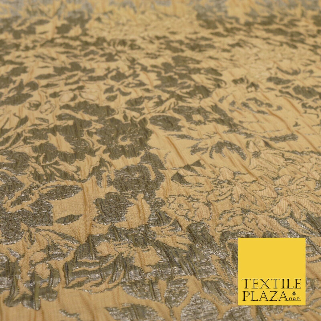 LIGHT TAN Floral Bloom Metallic Creased Brocade Jacquard Dress Fabric