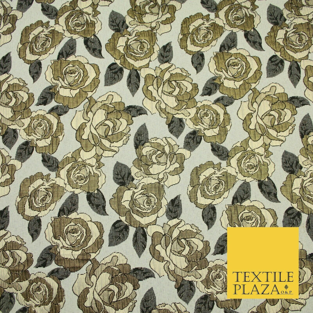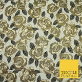 Luxury Ivory Metallic Gold Carnation Textured Brocade Jacquard Dress F