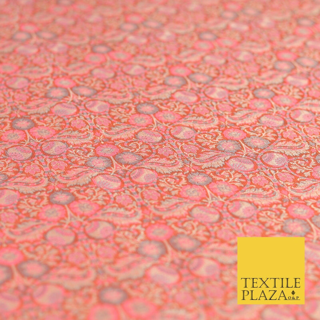 Peach Luxury Intricate Floral PURE Benarsi Brocade Woven Dress Fabric
