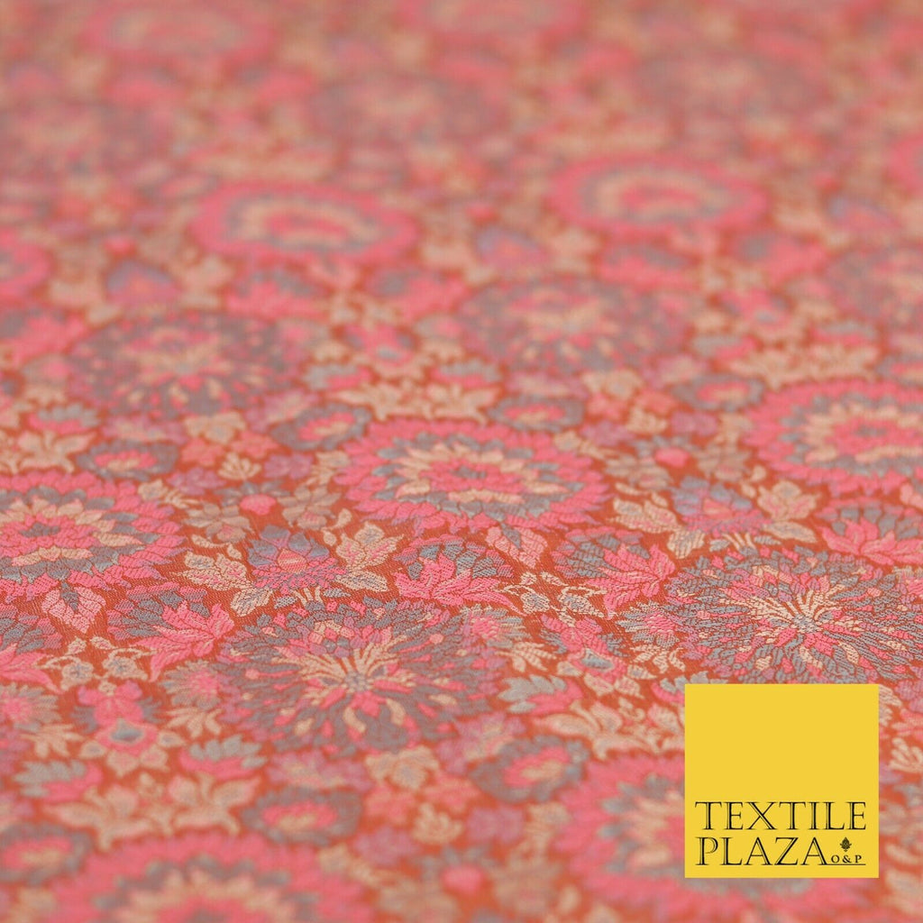 Pink Luxury Multi Flower PURE Benarsi Brocade Woven Dress Fabric Fancy