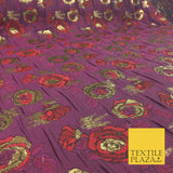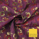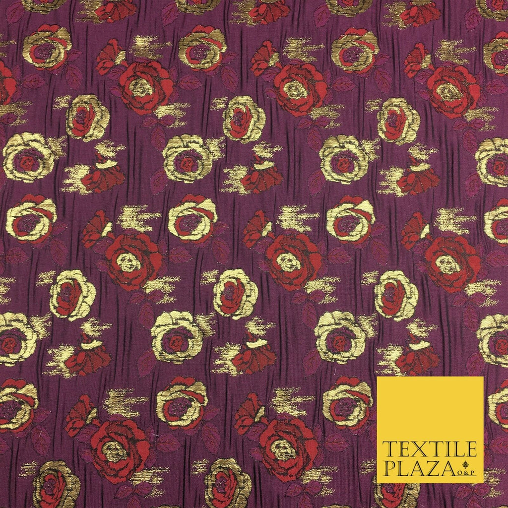 PLUM Two Tone Floral Metallic Rose Creased Brocade Jacquard Dress Fabr