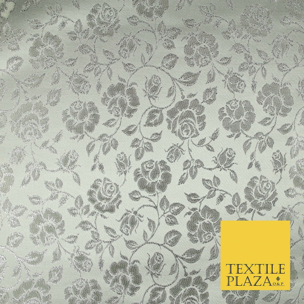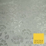Silver Floral Carnation Vine Satin Metallic Brocade Dress Fabric Fancy
