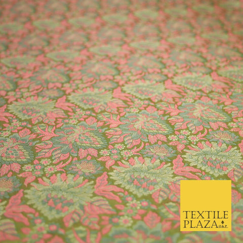 Green Pink Luxury Floral PURE Benarsi Brocade Woven Fine Dress Fabric Fancy 1759