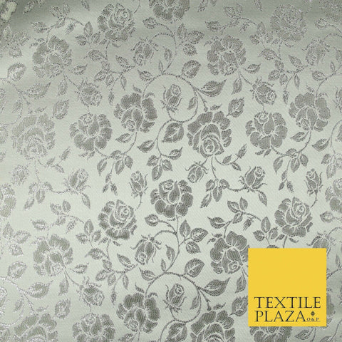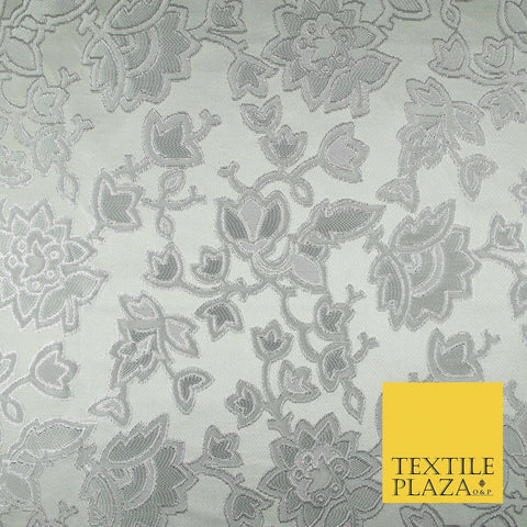 Silver Ornate Floral Scroll Satin Metallic Brocade Dress Fabric Fancy 58" 6003