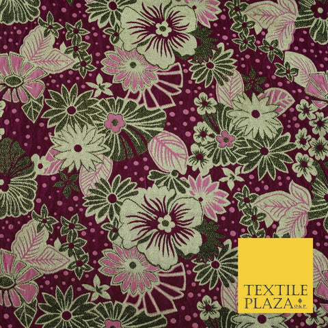 Magenta Pink Antique Gold Tropical Floral Dot Textured Brocade Dress Fabric 6846