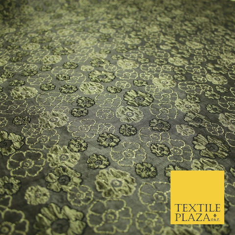 Grey Gold Metallic Gold Floral Pansy Textured Brocade Jacquard Dress Fabric 6851