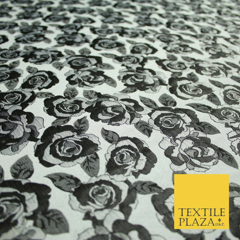 Monotone Grey Black Vintage Floral Roses Brocade Jacquard Dress Fabric 6858