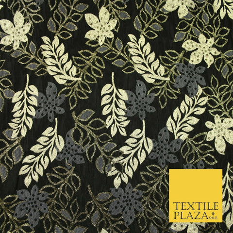 Luxury Floral Flower Mix Metallic Gold Brocade Dress Fabric 56" Wide 3 Colours