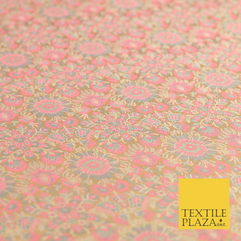 Carrot Pink Luxury Flowers PURE Benarsi Brocade Woven Dress Fabric Fancy 1742