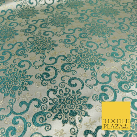 JADE TEAL Floral Gardenia Metallic Detail Brocade Dress Fabric Woven Fancy 1554