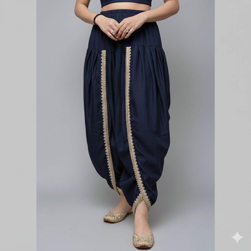 • NAVY BLUE | FAUX SILK | PLAIN READY TO WEAR DHOTI SALWAR