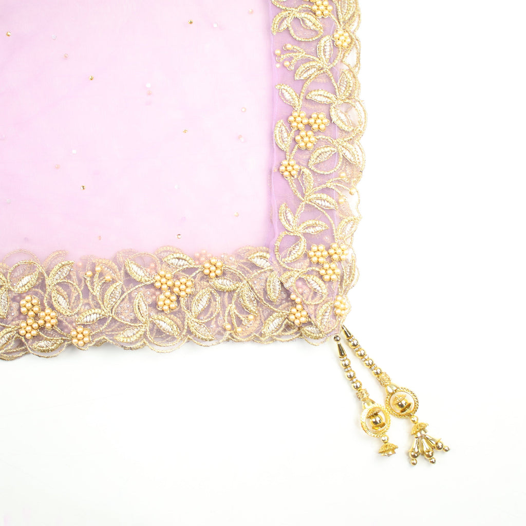 - Net Tulle Stonework Dupatta with Encrusted Vine Scalloped Border