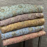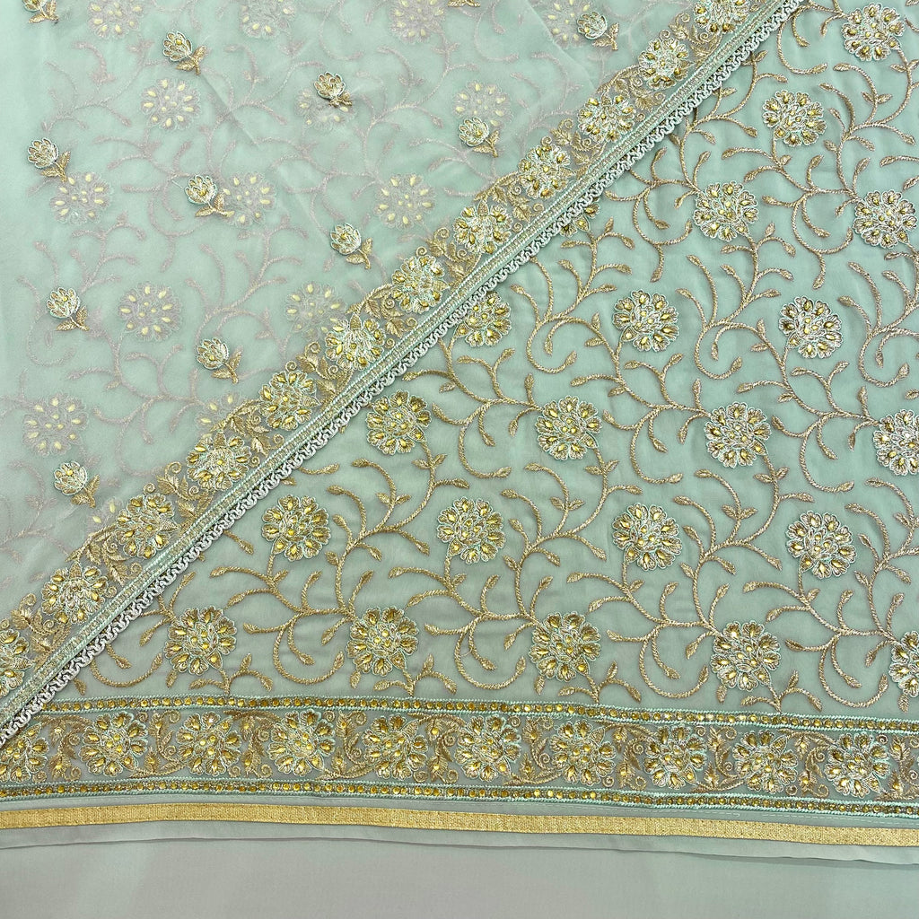 ▪️ Floral jaal threadwork embroidered georgette suit with gold stonework all over & border