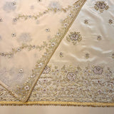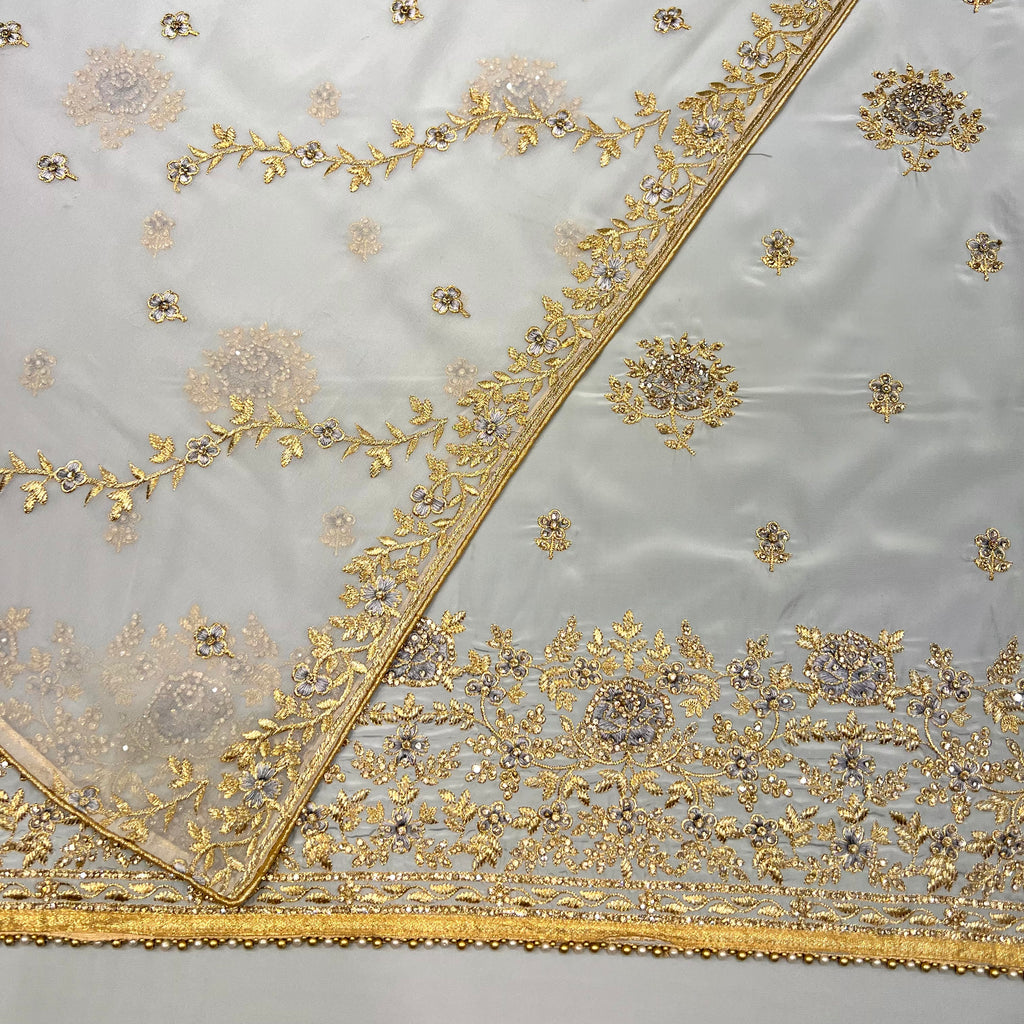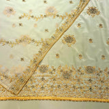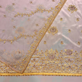 ▪️Georgette duppata with a two side embroidered border with floral embroidered motifs all over & finished with a four side gold piping