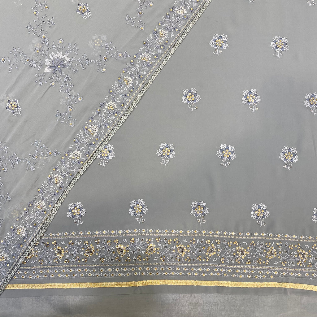 ▪️ Floral motif contrast threadwork embroidered georgette suit with gold stonework all over & border