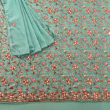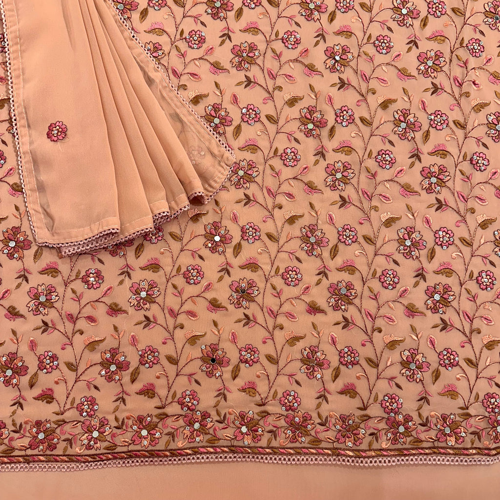 ▪️Georgette duppata with threadwork floral motifs all over with four sided trimming